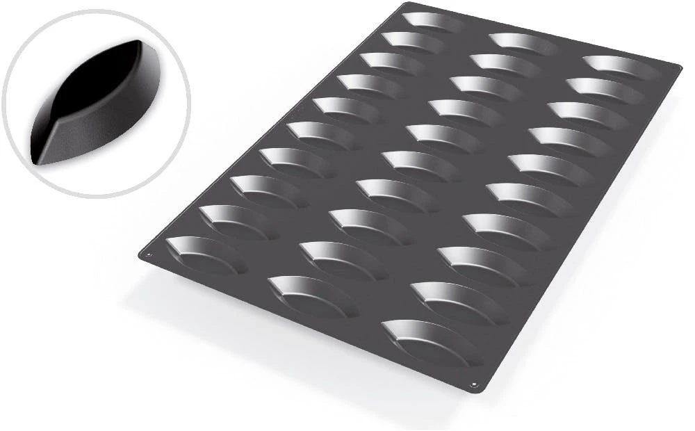 Diese Silikonbackform ist geeignet von -60 bis +230°C und kann in Backöfen, Mikrowellen und Gefrierschränken verwendet werden. ++ Ausführung: Schiffchen ++ Maße: 400 x 600 mm ++ Nutzen: 30 (105 x 45 mm) ++ Höhe: 15 mm ++ Volumen: 30 ml/Nutzen