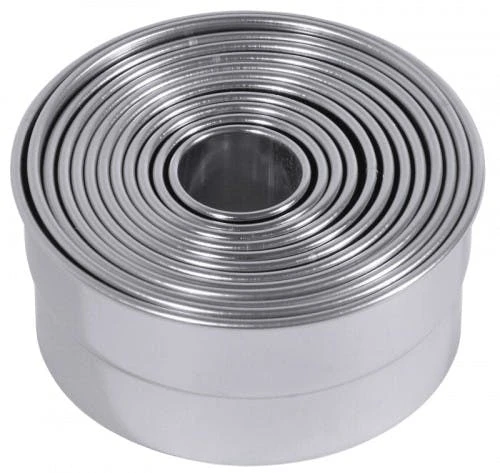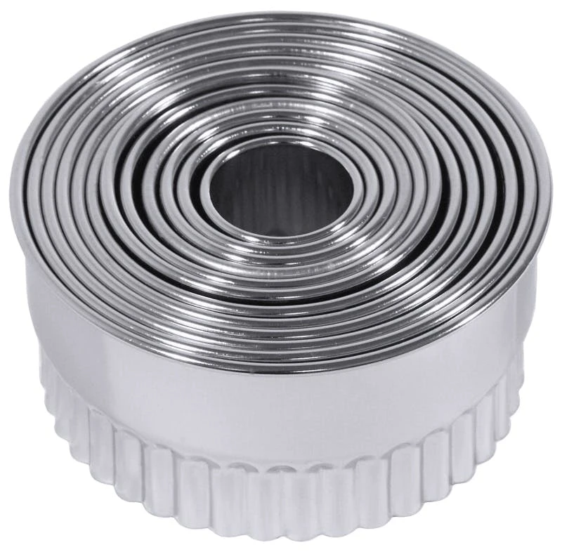 2x Ausstechsatz, rund, gewellt 12-teilig, aus Edelstahl Durchmesser: 2,5 cm – 10,5 cm, Höhe: 5 cm