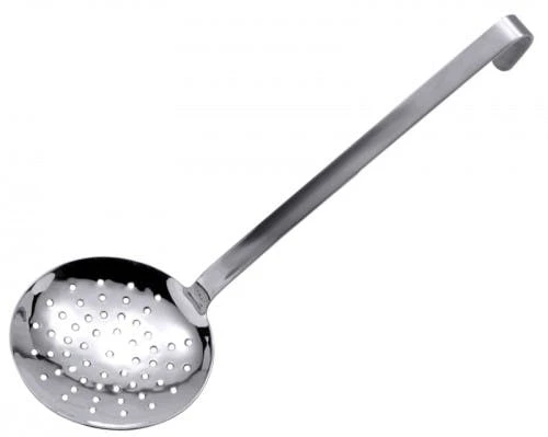 2x Contacto Schaumlöffel, fugenlos aus Edelstahl 18/10, hochglänzend, flache Form, mit extra breitem, seidenmatt poliertem Stiel (Materialstärke: 3,5 mm), mit 4 mm Lochung, extra schwere Qualität Durchmesser: 10 cm, Stiellänge: 33 cm