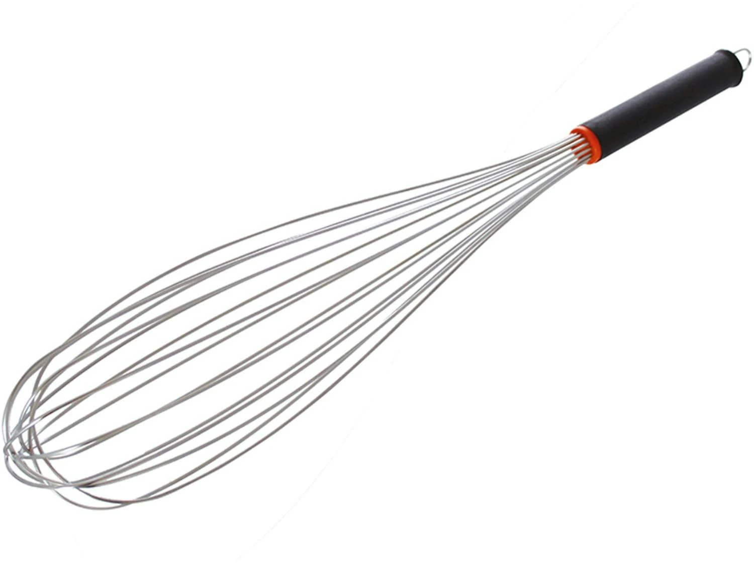Rührbesen 16 dicke Drähte, aus Edelstahl 18/10, ohne Aufhängeschlaufe, rutschhemmender, thermoplastischer, abrissfester Griff, die oktogonale Formgebung ermöglicht handliches, ermüdungsfreies Rühren, absolut spülmaschinenfest, schwere Spitzen-Qualität Gesamtlänge: 45 cm, Drahtdurchmesser: 2 mm, Stiellänge: 22 cm