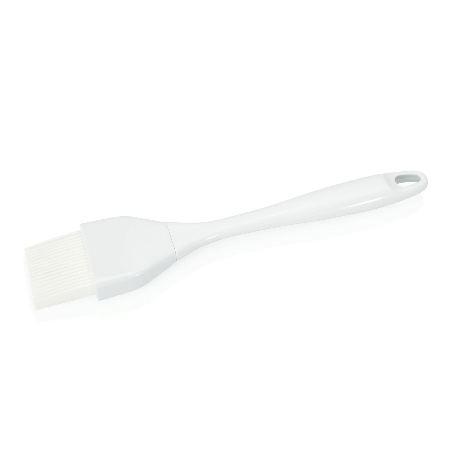 3x Fett-/ Kuchenpinsel mit verschweißtem Stiel aus crèmefarbenem Polycarbonat. rotem Schaft und 6 cm langen Naturborsten. temperaturresistent bis +120C Länge: 25 cm. Breite: 5 cm