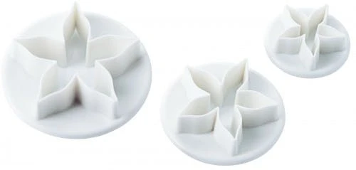 Fondant-Ausstecher ROSENBLATT Set aus 3 Größen, aus weißem Polypropylen, mit Auswerfer
