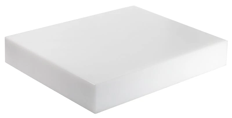 Hackblock aus Polyethylen, aus weißem HD-Polyethylen 500. Separat bestellen: stabiles Untergestell aus 40 mm Vierkantstahlrohr aus Edelstahl 18/10, matt gebürstet, mit höhenverstellbaren Füßen aus grauem Kunststoff