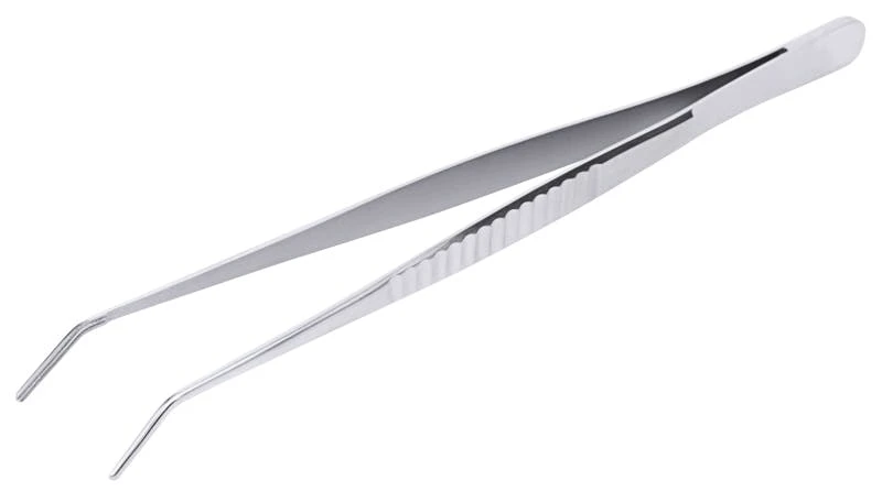 Koch-Pinzette, aus Edelstahl, schwere Qualität, die gerändelte Grifffläche ermöglicht ein gezieltes Aufnehmen und Servieren von Speisen