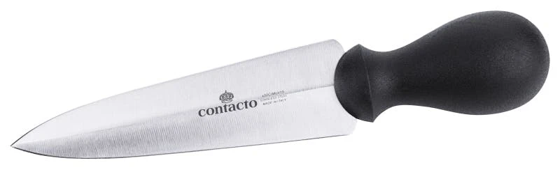 Parmesanmesser, zum Aufbrechen und Teilen des Käselaibs, zweischneidiger Klinge aus X65CrMoV15-Stahl, seidenmatt poliert, mit schwarzem hochdichten Griff aus Polyethylen, extra schwere Qualität