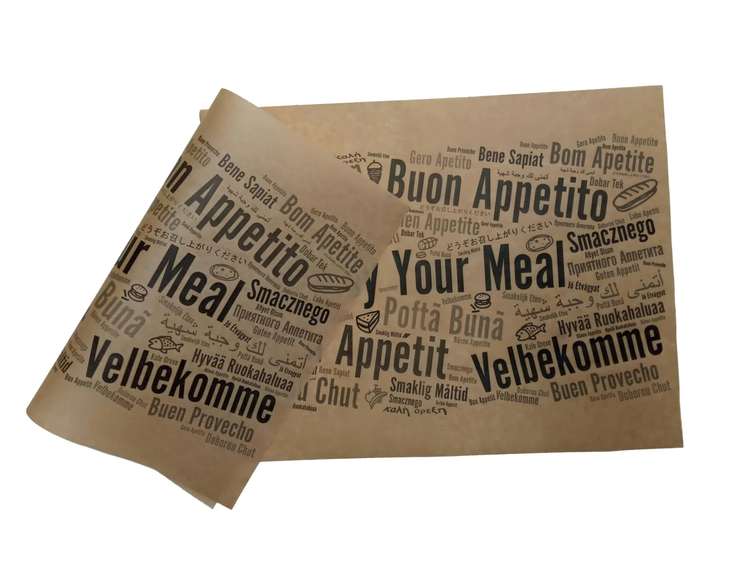 Farbe: braun mit neutralem Druck „Enjoy your meal/Guten Appetit“ mehrsprachig