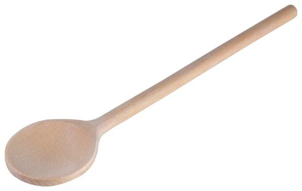 Der Löffel hat eine ovale Kelle, auch Schale genannt, und einen rund gedrechselten Stiel. Als Küchengerät quasi unersetzbar, findet man einen solchen Holzlöffel in nahezu