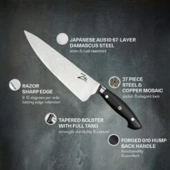 Executive-Plus Serie 7` Santokumesser 61 HRC Damaszenerstahl Schwarz