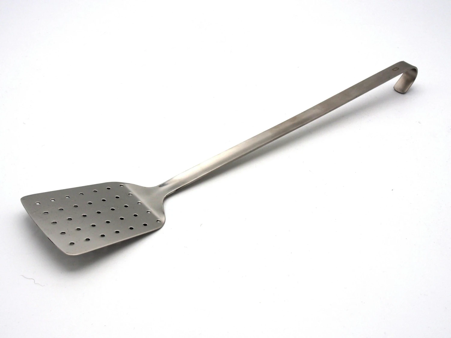 Der METRO Professional Pfannenwender aus Edelstahl (18/8) hat eine Gesamtlänge von 50 cm und verfügt über einen Haken zum Aufhängen. Die Größe der Wendefläche beträgt 13 x 10 cm (L x B).