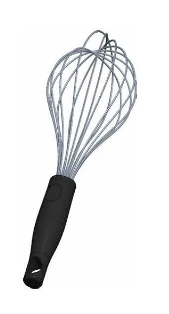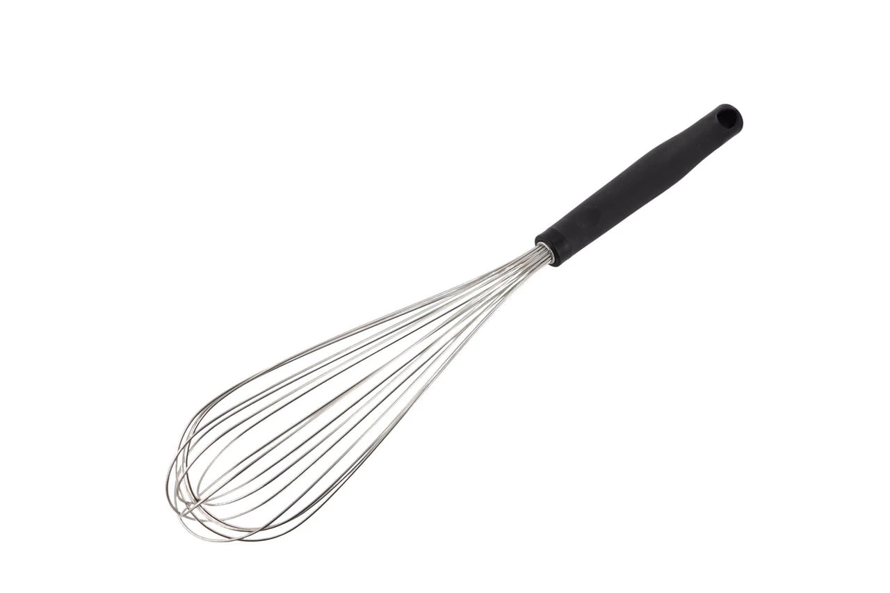 Dieser Schneebesen von METRO Professional besteht aus 8 Drähten (160 mm lang, 1.4 mm dick) aus Edelstahl und einem eingesetzten rutschfesten Griff aus Polypropylen und Thermoplastischem Kunststoff (ø 24 mm x L104 cm), der für mehr Komfort beim Kochen sorgt. Das Produkt hat die Maße 26.4 x 7.08 cm und kann zum Aufschlagen von Speisen bei einer Temperatur von 0°C bis 100°C verwendet werden. Für einen einfachen verstauen verfügt er über einen Aufhängeloch.