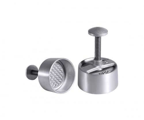 - legen Sie das gewürzte Fleisch in die Burger-Presse und drückern Sie mit der gewünschten Festigkeit an